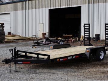 Come with the following: 205/75R15” tires, 2-3500# brake axles, 2 ⁵⁄₁₆" 10k A-Frame coupler & 8k drop leg jack, 2” PT pine floor, 5” channel iron main frame, 5’ flip-up spring assist ramps, checker plate fenders, expanded metal in tongue, breakaway kit, LED lights, elite gussets, Tongue Length: 55”, Deck Height: 20”, Bed Width: 81 ½” GVWR: 7700#, GAWR: 7000#, WT:1700#, CAP:6000#