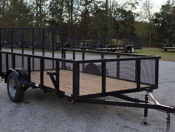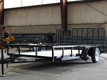Come with the following: ST175/80R13” tires, 2” x 3” angle iron, (1) 2000# axle, 2” 3500# coupler, wood/wire floor, 12” rail, 48” L-iron gate, 8” smooth fenders, 3” channel pockets, LED lights, Bed Width: 60 ½” GVWR: 2200#, GAWR: 2000#, WT: 580#, CAP: 1620#